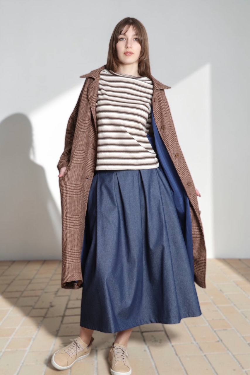 Trench Coat GOHAN 239,00 € Desconto de %. IVA incluído. Partilhar O produto estará disponível para compra brevemente. Casaco trench em tecido "Príncipe de Gales" com aspecto alinhado, forrado a cor contrastante. Tem mangas raglan e bolsos metidos na frente com pala. Modelo linha-A Gola em bicoManga comprida raglanBolsos metidos com palaAperta com 5 botões de fantasia 100% algodãoTamanho únicoLargura frente abaixo da cava = 58cms (circular 116cms)Comprimento: 110 cm HANDMADE IN PORTUGAL Instruções de lavagem: limpeza a seco Nota: este casaco foi fotografado com o top KAZUMI e a saia AKEMI